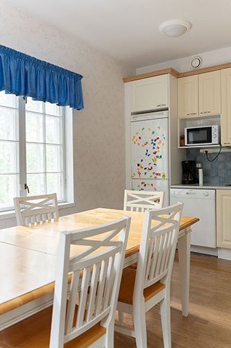 Ruiskukassa on yhteinen keittiö, kylpyhuone ja wc.