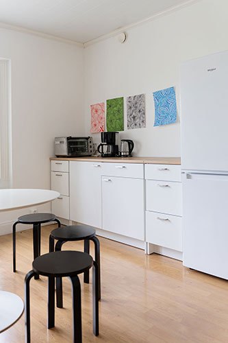 Ruiskukassa on yhteinen keittiö, kylpyhuone ja wc.